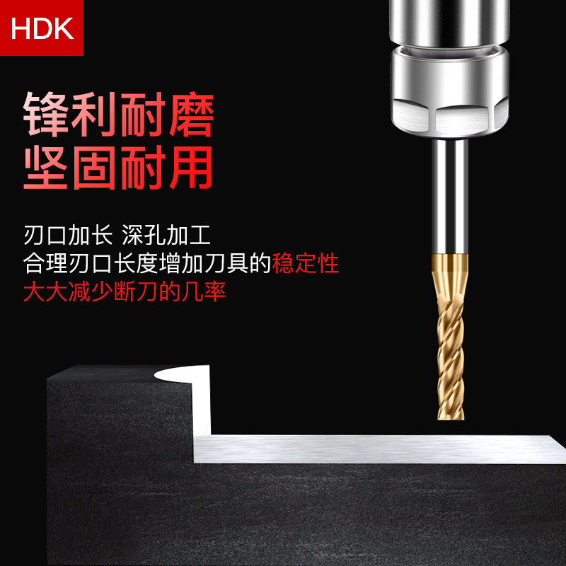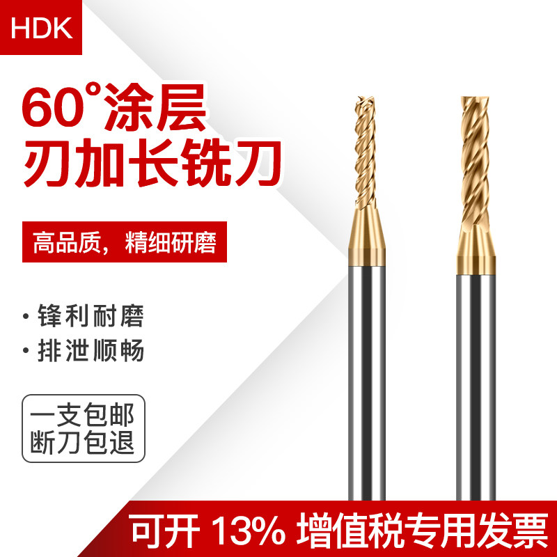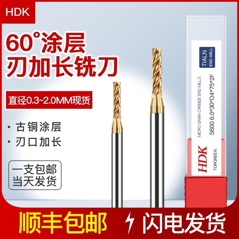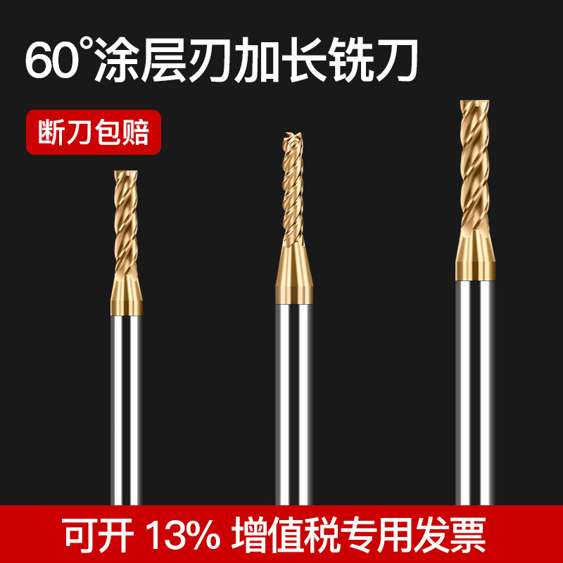 钨钢铣刀加硬合金加长刃平底立铣刀涂层HRC60度加硬进口数控刃具