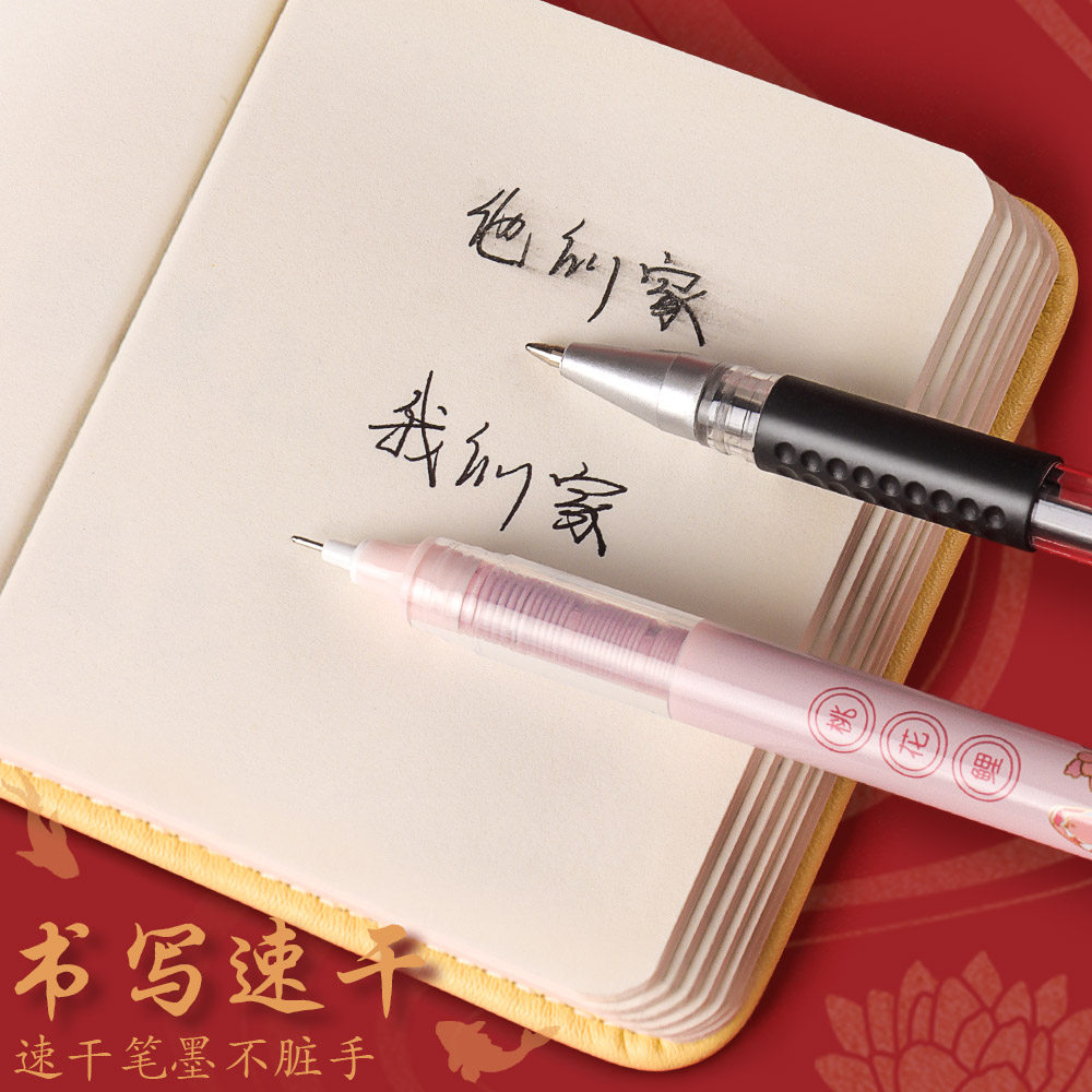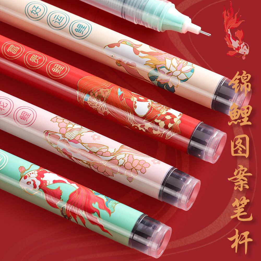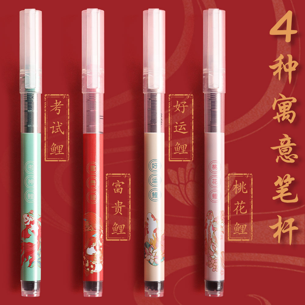 晨光锦鲤中性笔中国风水笔学生用黑色0.5mm考试专用碳素水性签字笔芯速干直液式走珠笔圆珠笔按动高颜值
