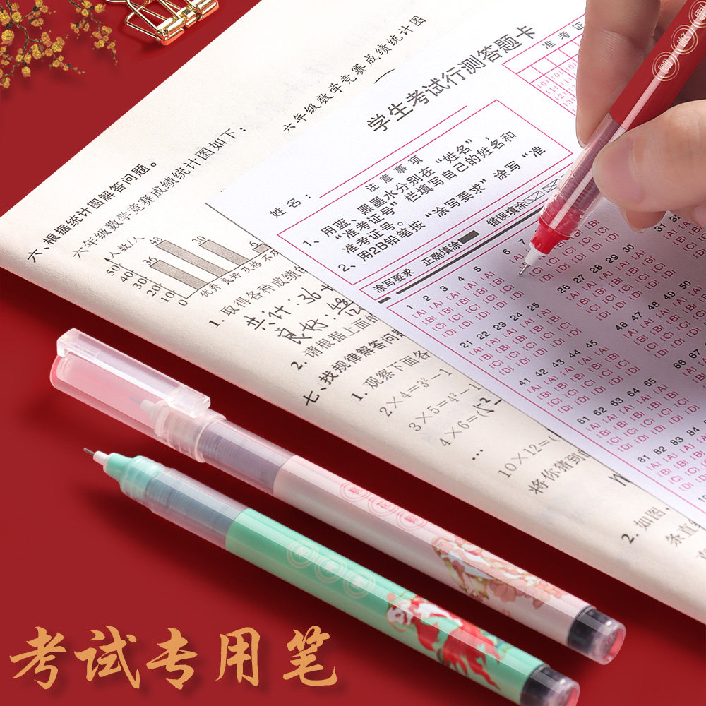 ST刷题笔高颜值按动中性笔圆珠笔黑色水笔小学生专用考试0.5速干碳素笔水性黑笔按压式做笔记签字笔非按斤卖