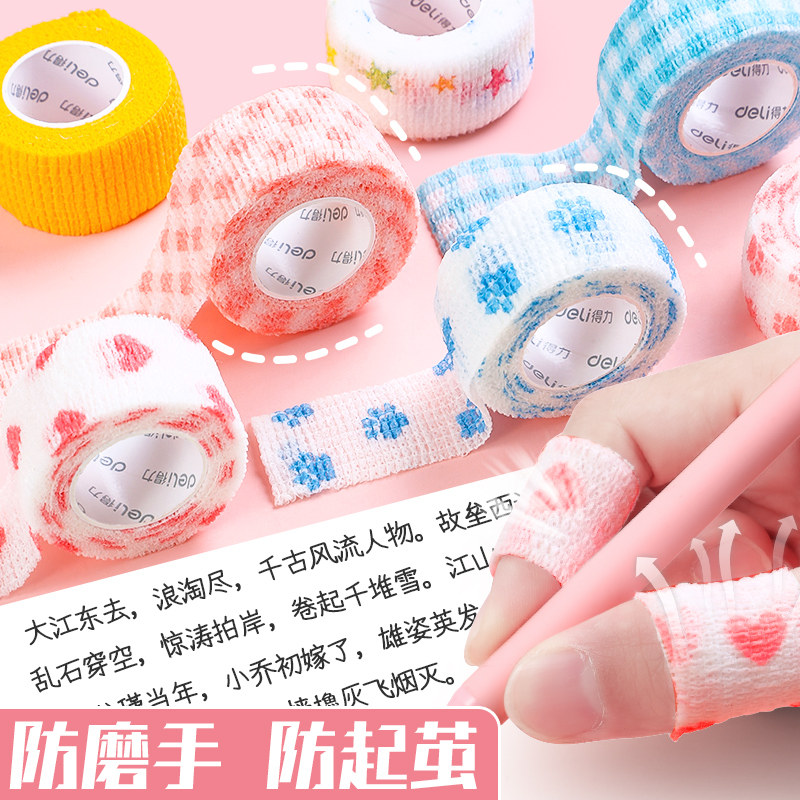 得力手指绷带写字护指绷带学生护手防茧自粘ins保护套缠胶带可爱