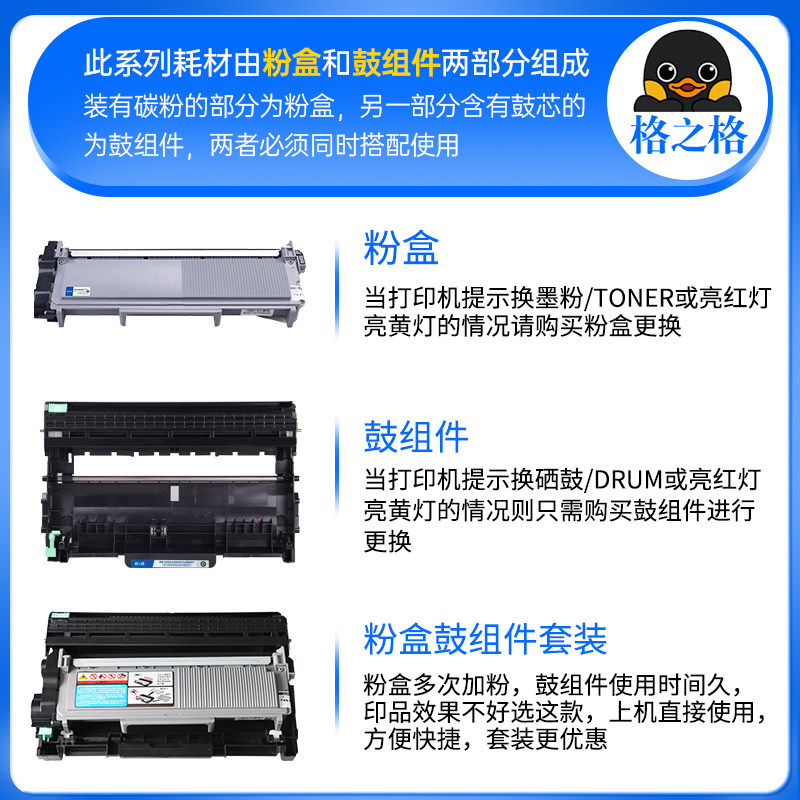 适用 兄弟FAX-2890 2990传真机原装格之格打印机HL-2250DN TN2225粉盒2215碳粉硒鼓墨盒 激光原装格之格