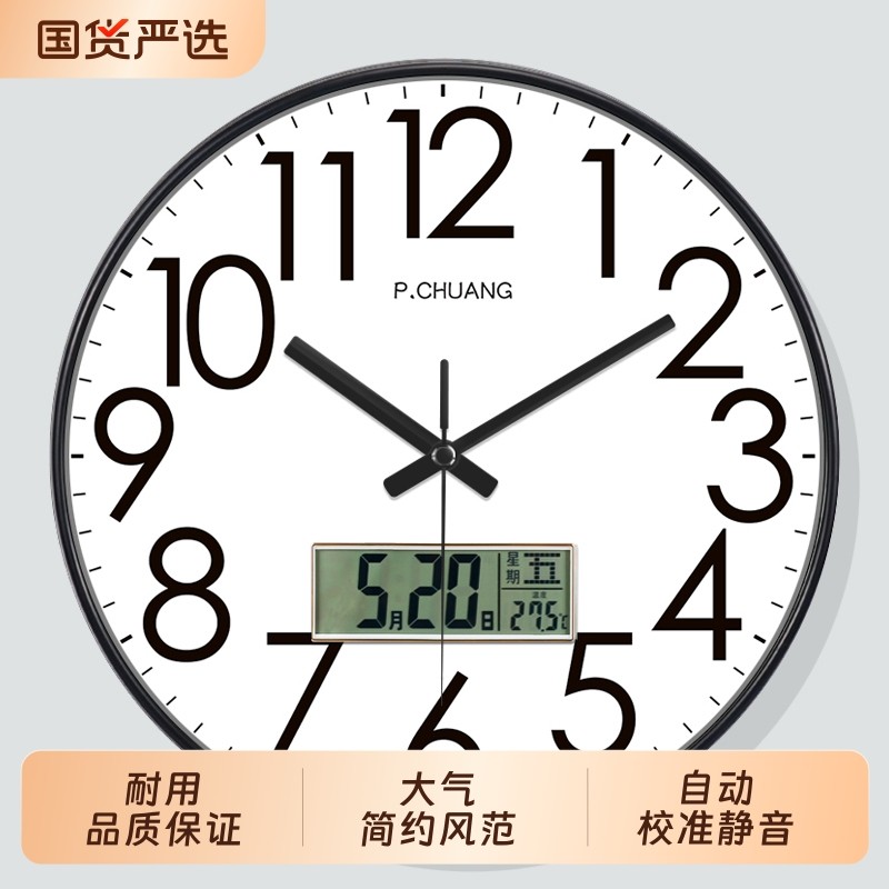 新款大吉大利客厅家用时尚双日历静音挂钟万年历现代温度钟表时钟