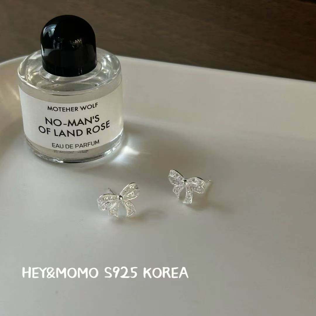 12.15直播韩国momo银饰蕾丝蝴蝶结戒指耳钉925银