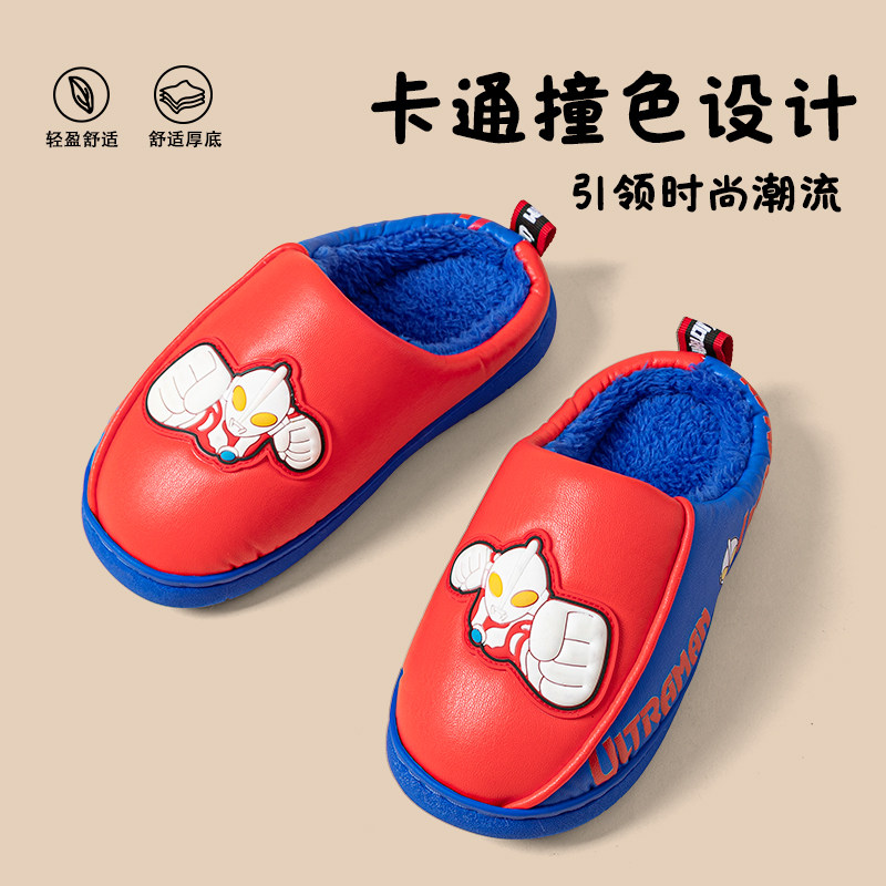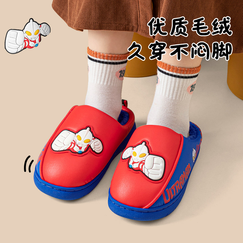 奥特曼儿童棉拖鞋男童冬季室内加绒保暖防滑外穿学生棉鞋女童厚底