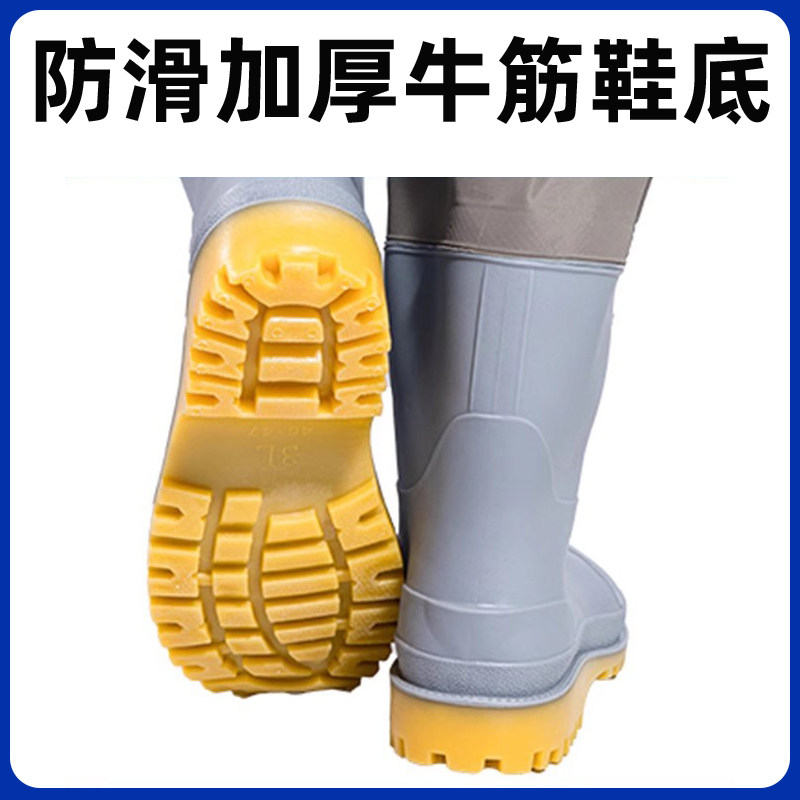 加厚全身防水连体下水裤水鞋抓鱼雨裤全封闭雨衣透气挖藕服水叉裤