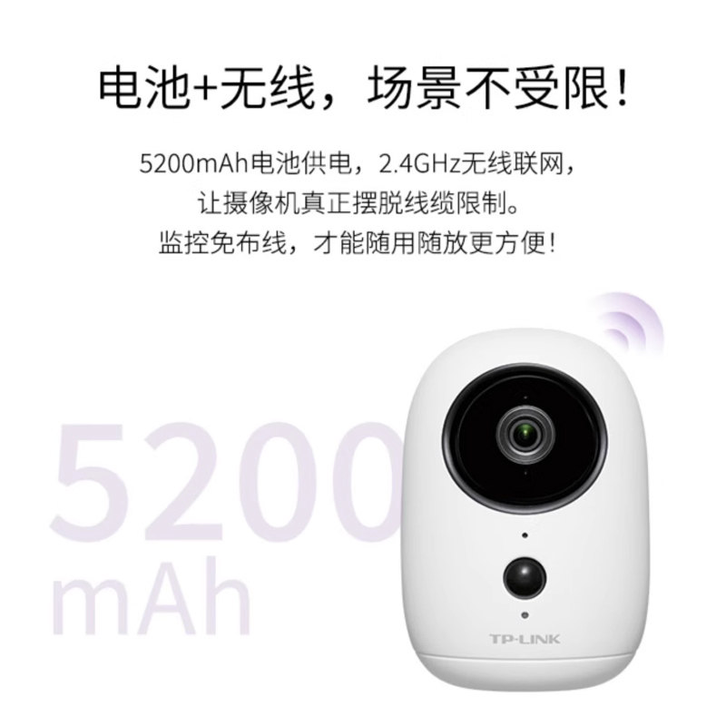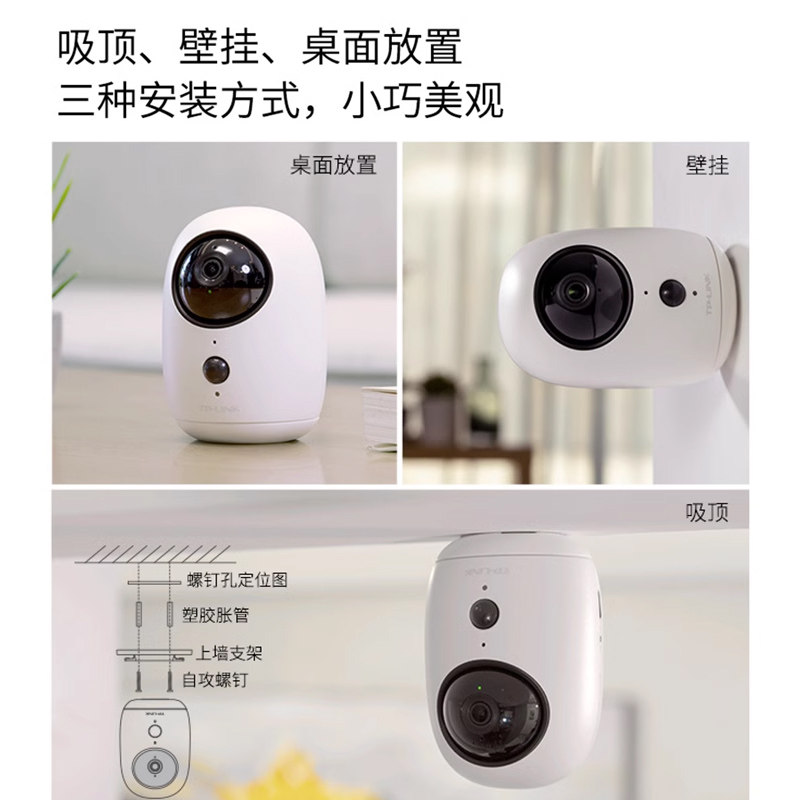 普联TP-LINK400万电池版家用摄像头室内无线监控器360全景免插电可对话wifi摄影头手机远程门口高清TL-IPC44B