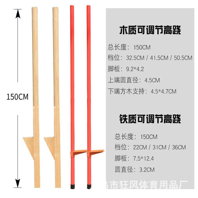 木制高跷高脚马 民间经典运动 可调节高跷 铁高跷
