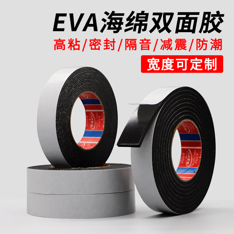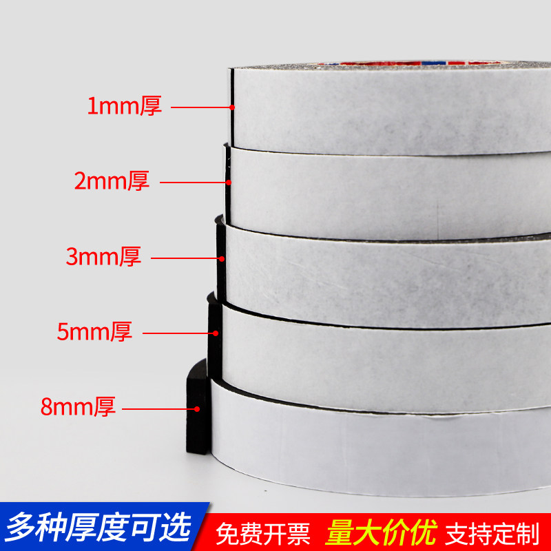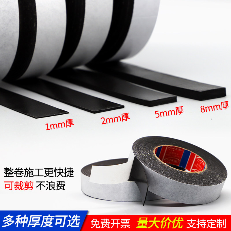 加厚黑色EVA海绵双面胶带高粘性铝塑板中空玻璃门窗雨棚填缝阳光房幕墙密封条海绵泡棉双面胶1-2-3-5-8-10mm