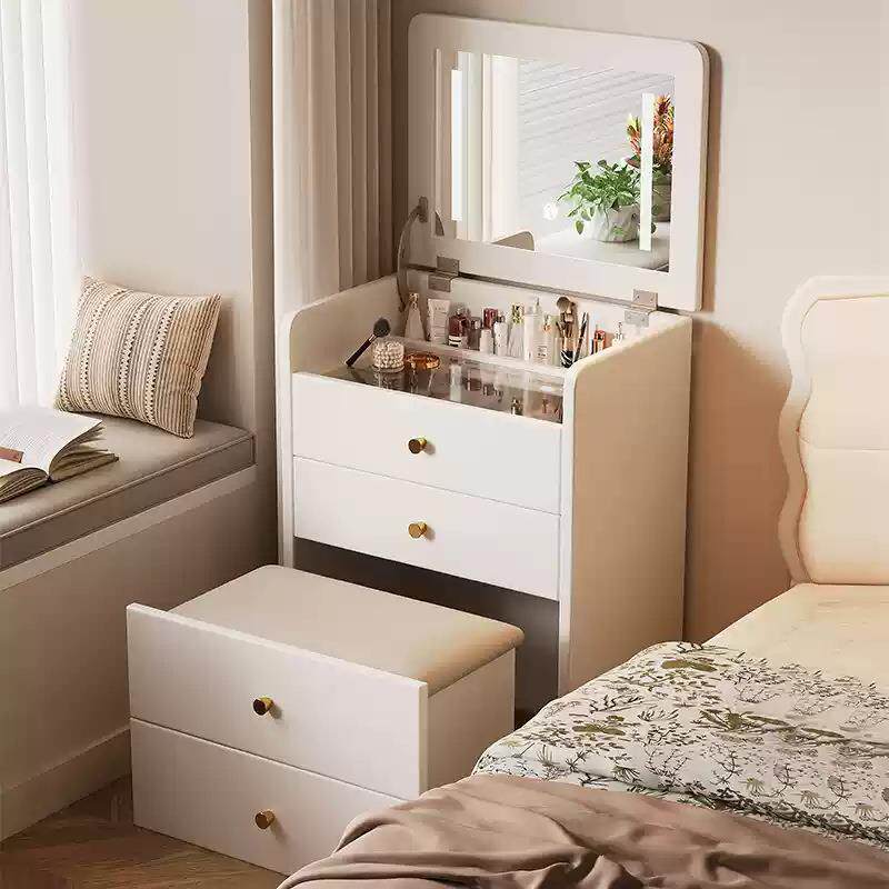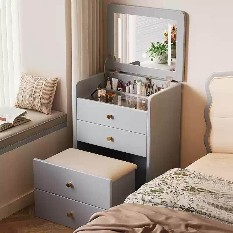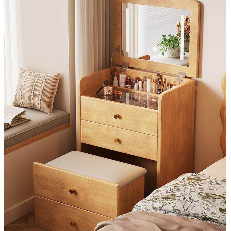 实木梳妆台斗柜一体化妆桌翻盖镜子家用卧室床边小型多功能收纳柜