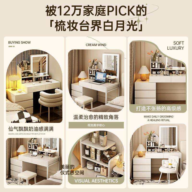 实木梳妆台卧室现代简约小型2025新款转角化妆桌化妆镜收纳柜一体