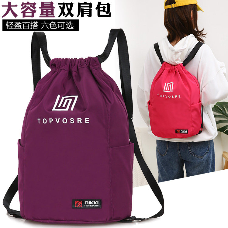 束口袋抽绳双肩包2023年新款旅行背包女轻便大容量运动健身包女包