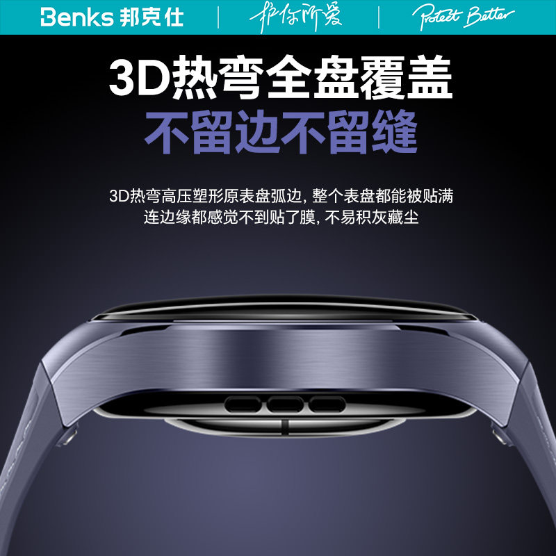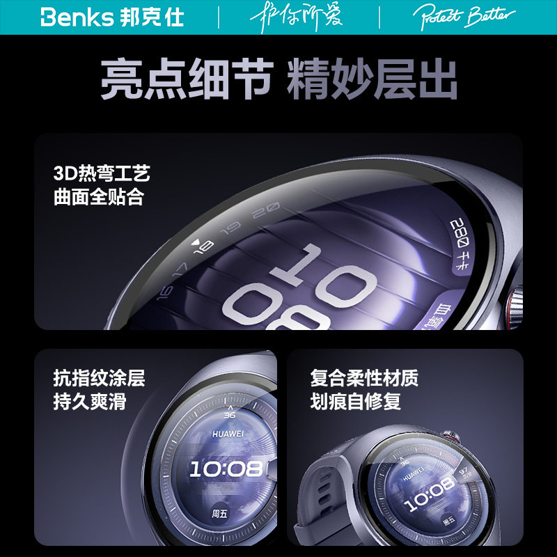 Benks适用华为手表Watch5保护膜新款3D热弯曲面全包防摔watch5智能表盘膜46mm高清钢化42防刮软膜无尘仓贴膜