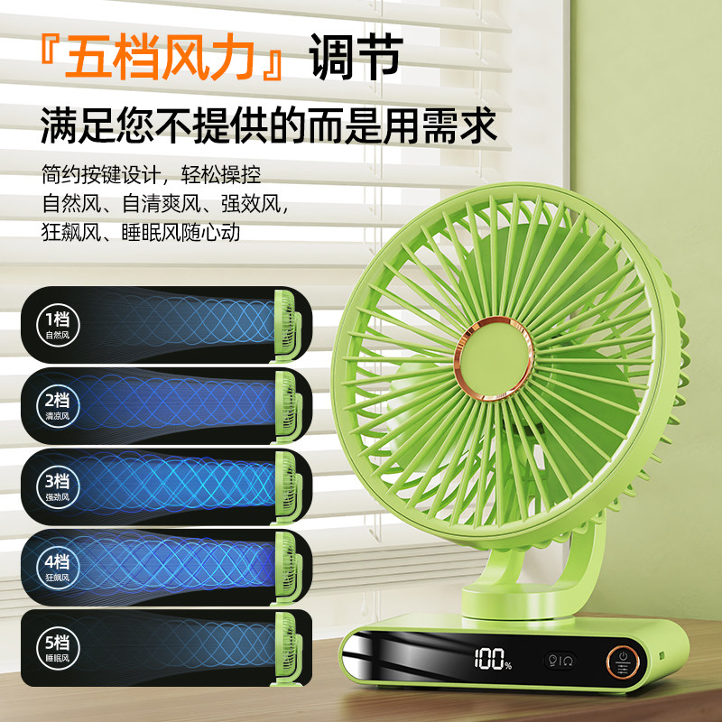 摇头小风扇办公桌面静音户外便携式车载usb充电宿舍床上吊扇小型