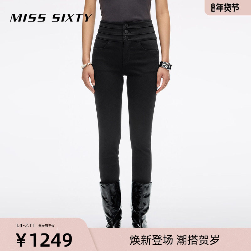 Miss Sixty2025秋季新款牛仔裤女三环高腰修身四面弹小黑裤显瘦