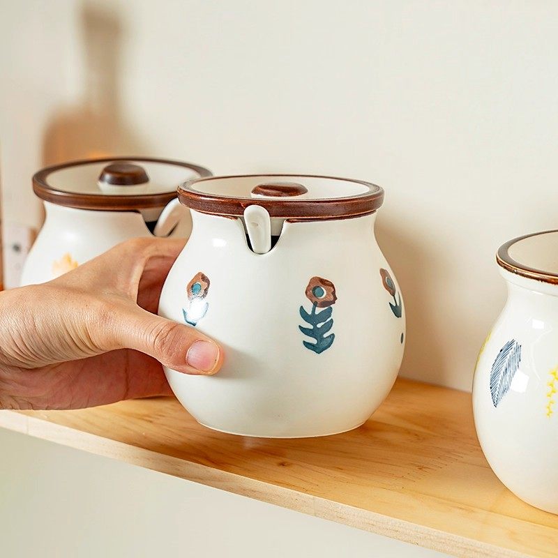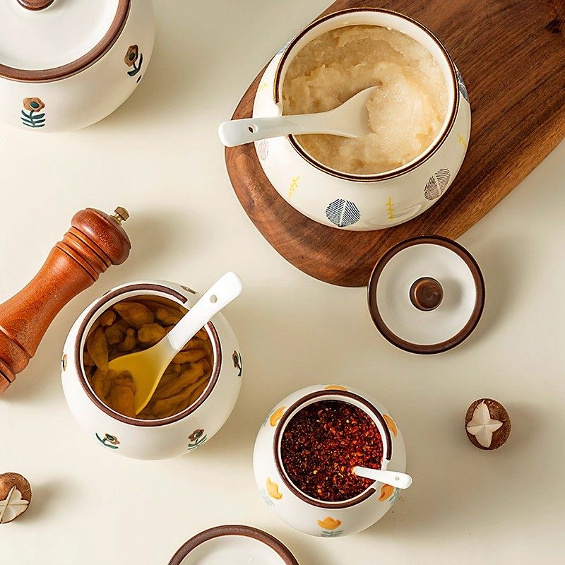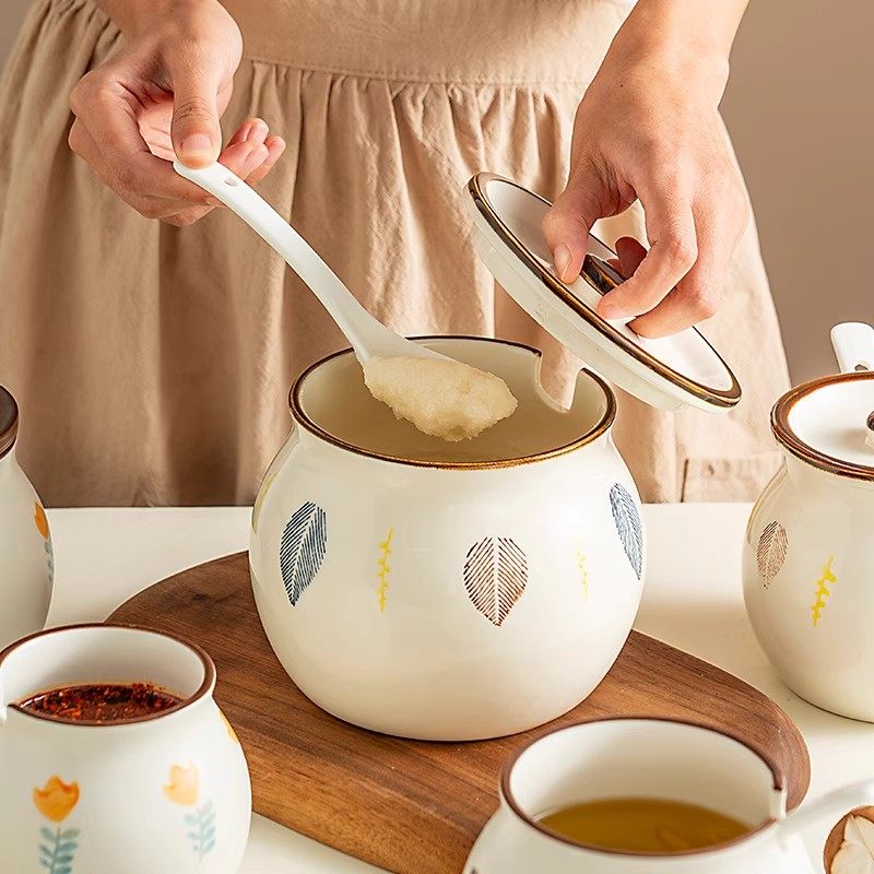 厨房陶瓷猪油罐家用辣椒罐油泼辣子专用罐荤油容器耐高温