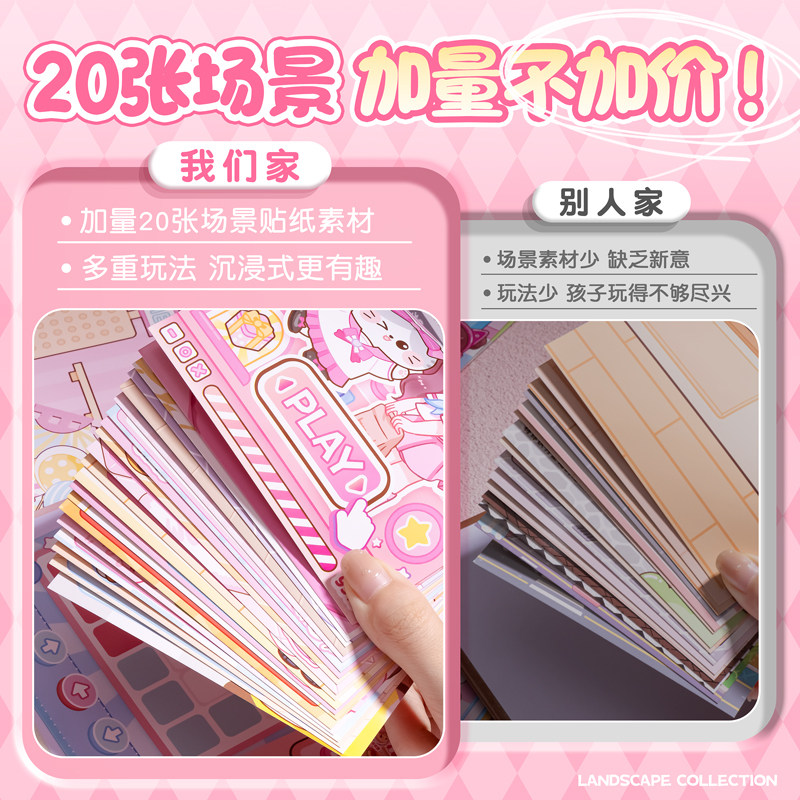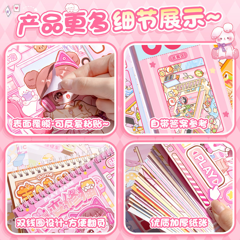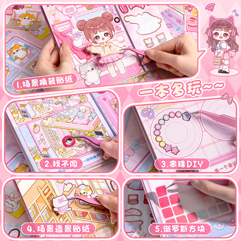 萌崽新款学霸学渣果冻贴纸安静书儿童免裁剪手工粘贴DIY女孩趣味玩具