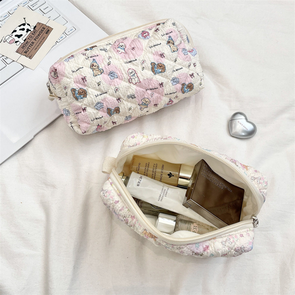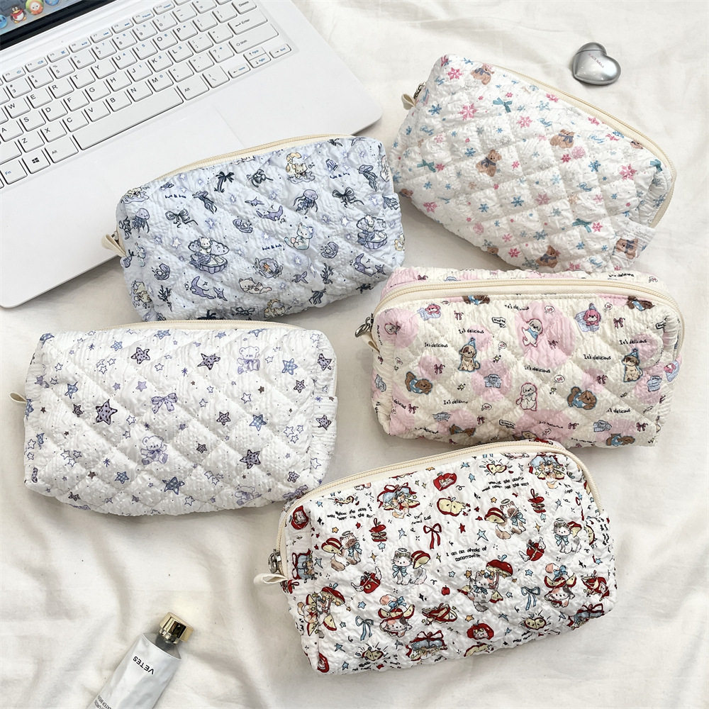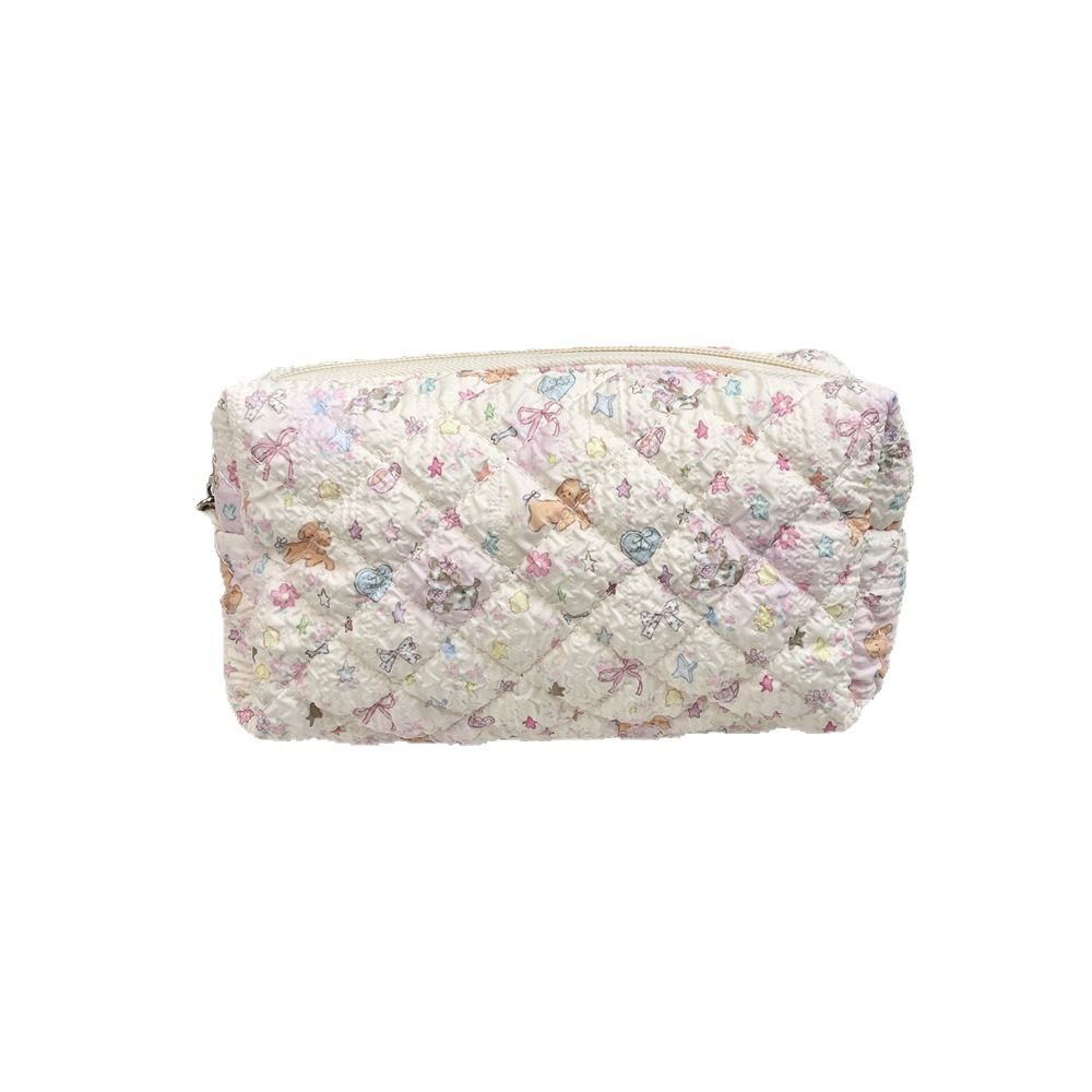 【次日达】5424 卡通压花绗缝笔袋手拿化妆包女大容量收纳学生拉链文具笔袋