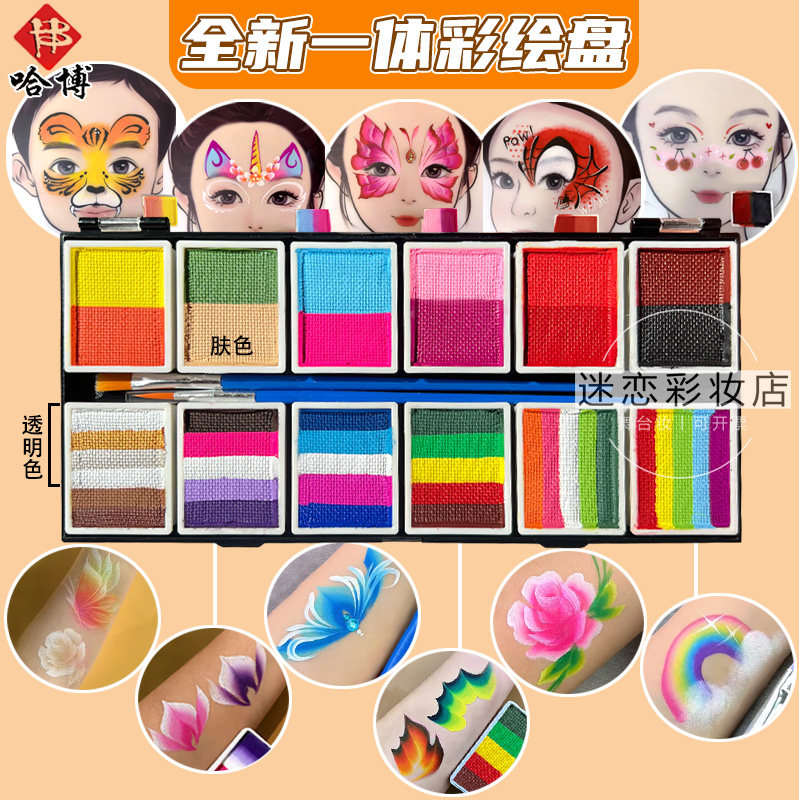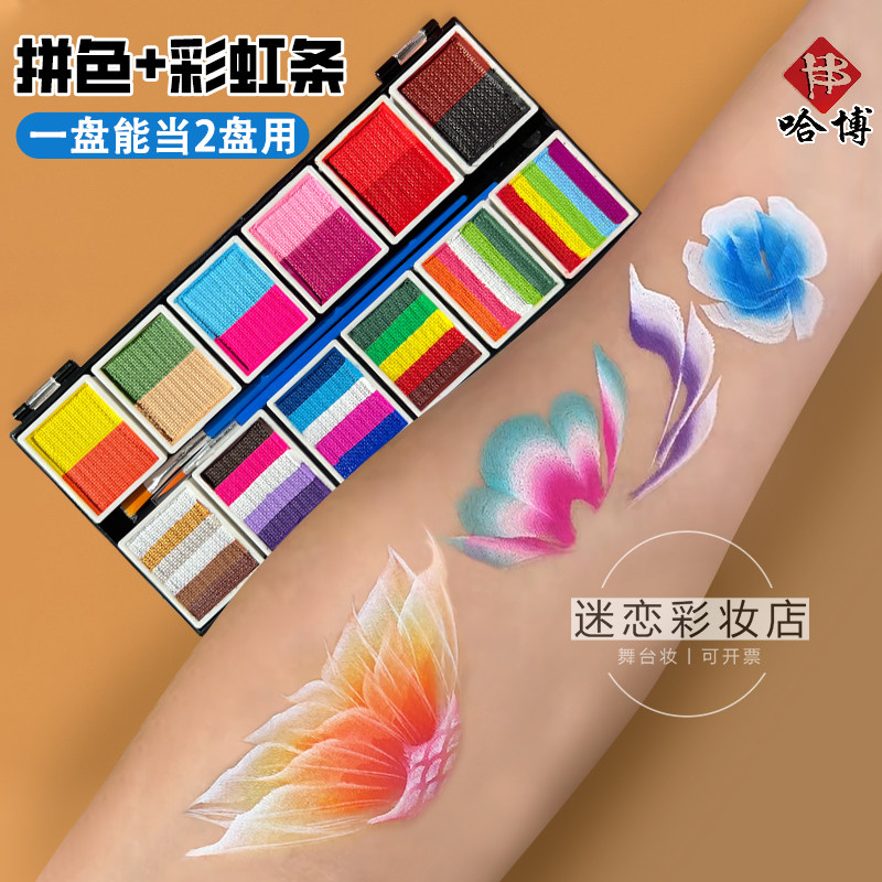 哈博全新彩虹拼色盘儿童面部彩绘专用彩绘膏舞台妆水溶性彩绘颜料