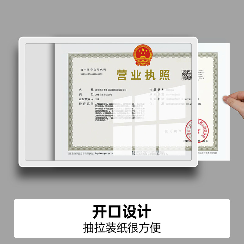 铝合金工商营业执照框卫生许可证正本a3证件展示相框执照框架挂墙