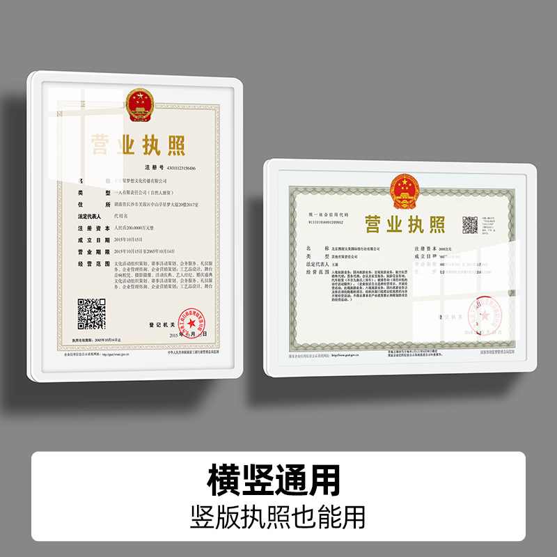 营业执照框架挂墙证书证件食品卫生经营许可证相框正副本保护套