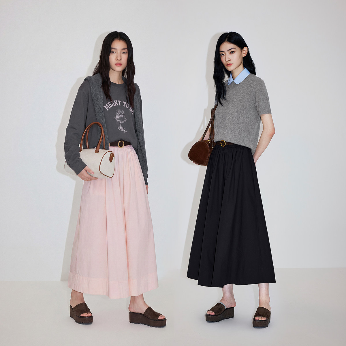 商场同款森马半身裙女磨毛纯棉长裙2025秋新款纯色伞裙百搭20002