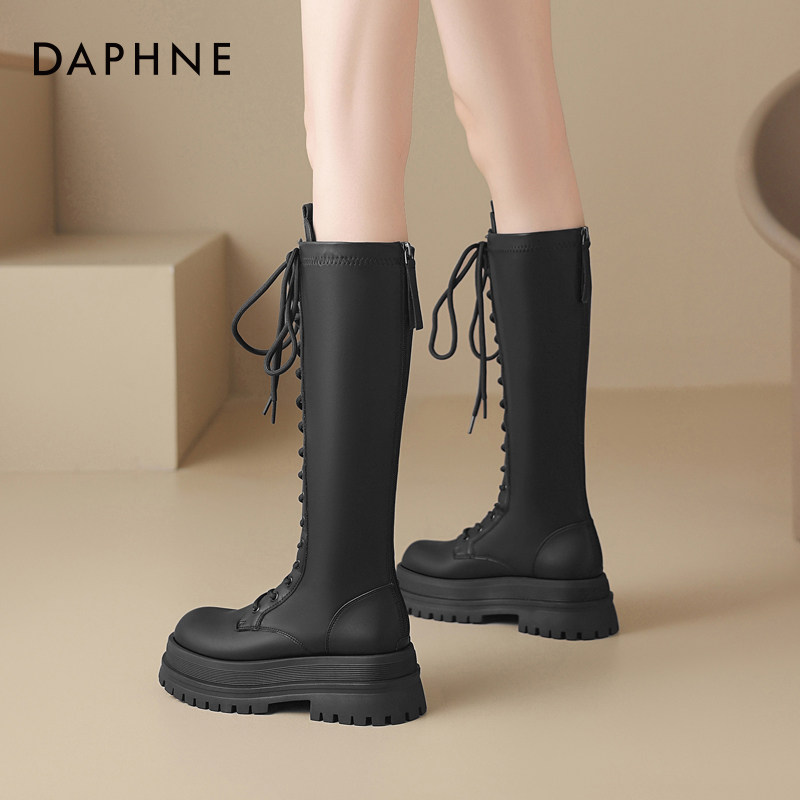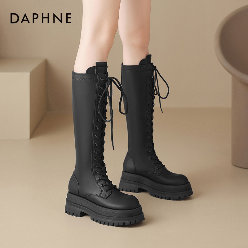 达芙妮厚底靴子女长筒春季美拉德2026新款春款棕色高筒骑士马丁靴