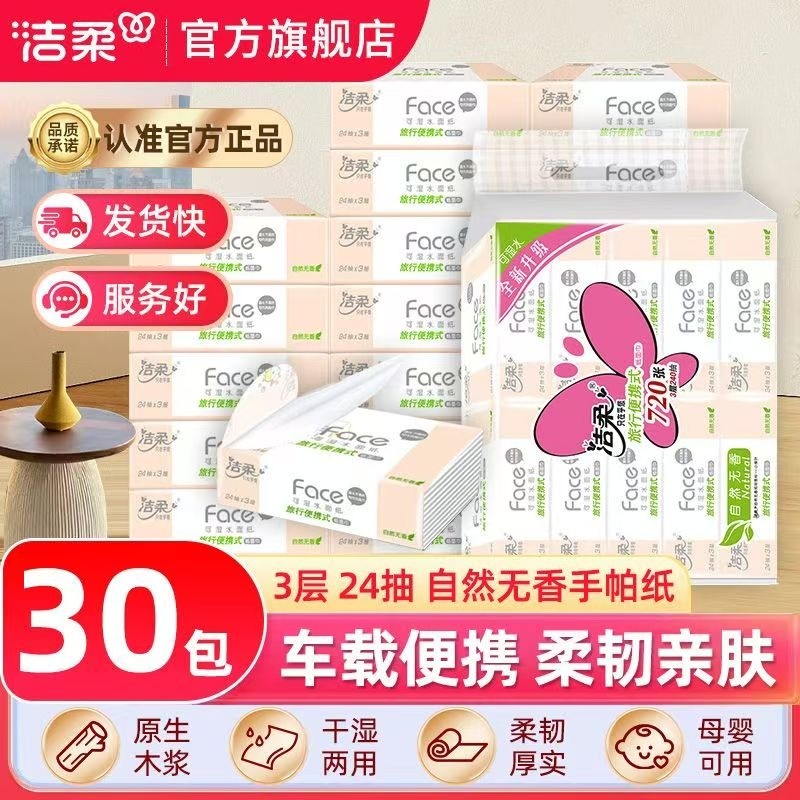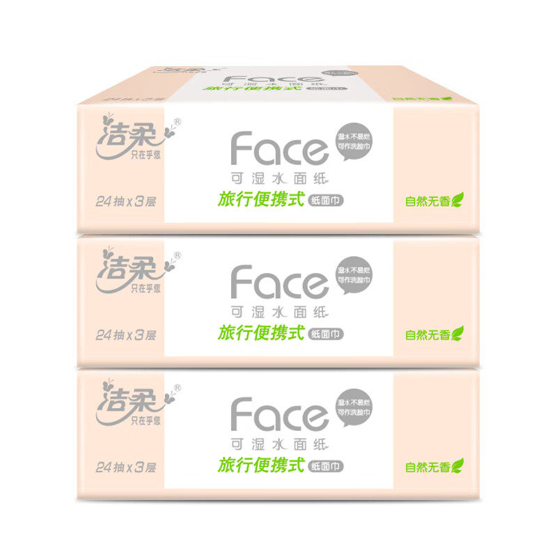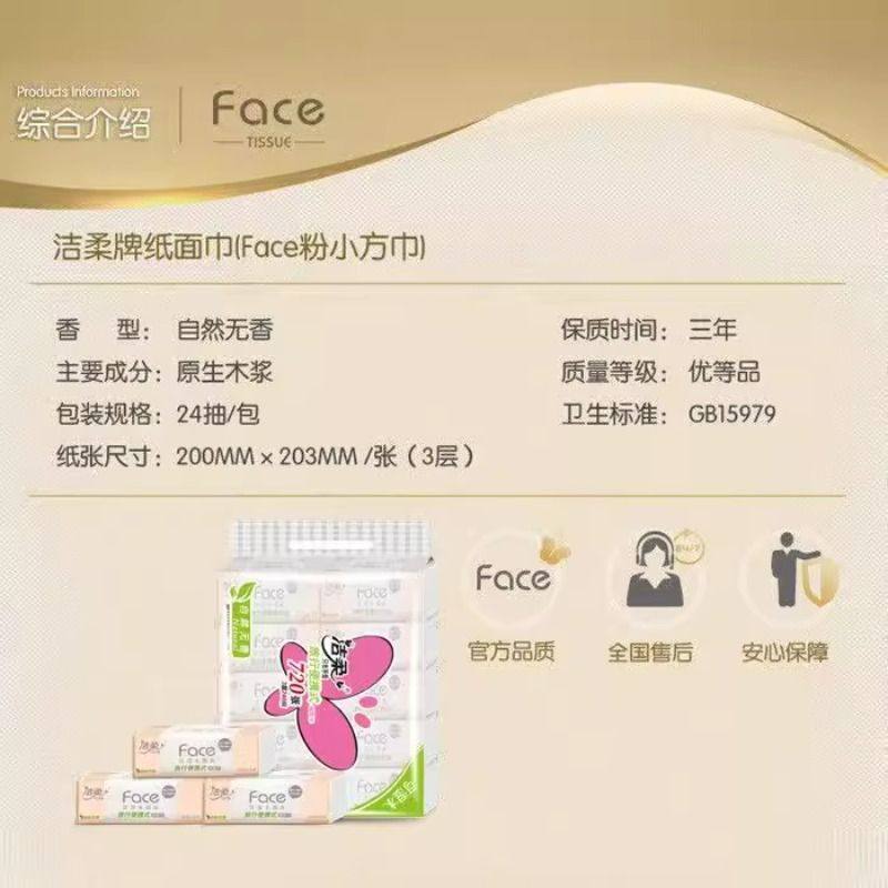 洁柔小方巾粉Face餐巾纸手帕纸面巾纸小包装旅行便携无香原生木浆