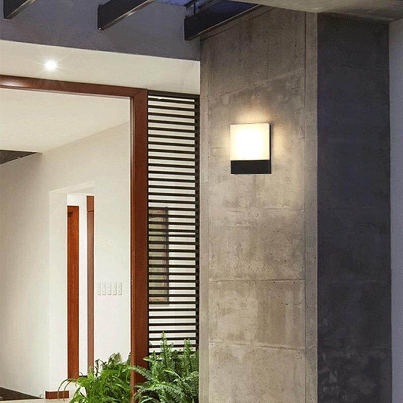 简约户外人体感应led方形壁灯 别墅走廊花园庭院防水工程小壁灯