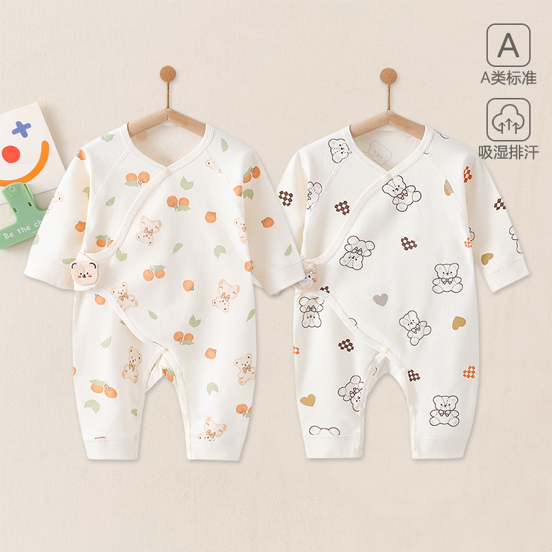 婴儿无骨春秋冬装连体衣新生儿纯棉宝宝衣服爬服哈衣爬行服系带