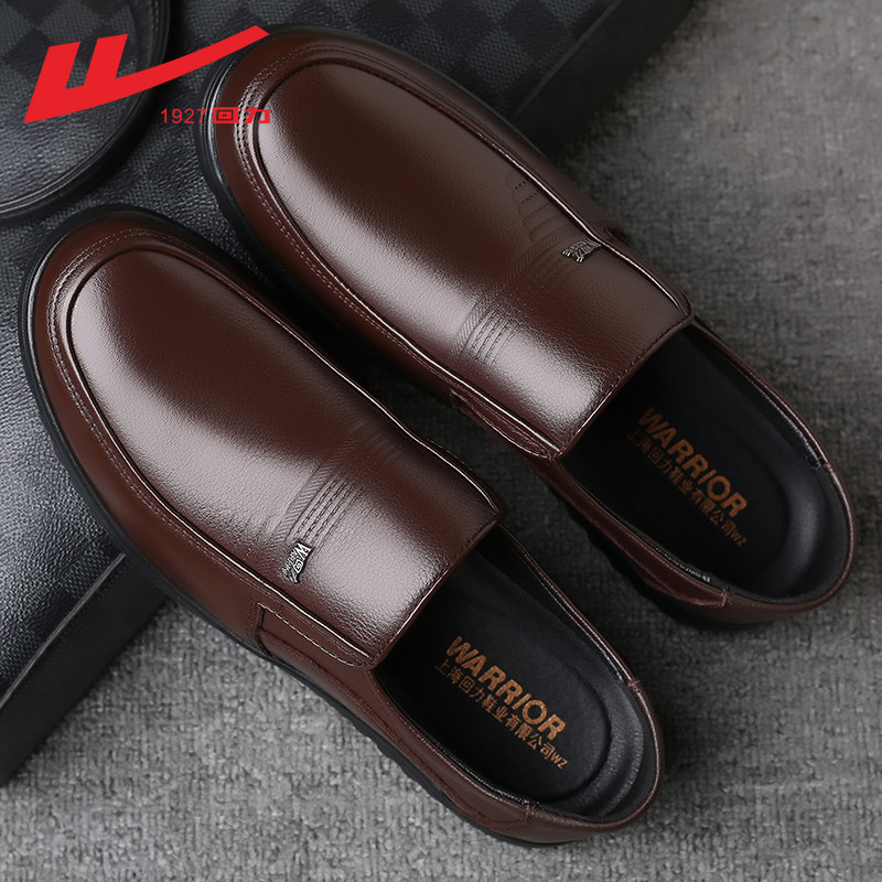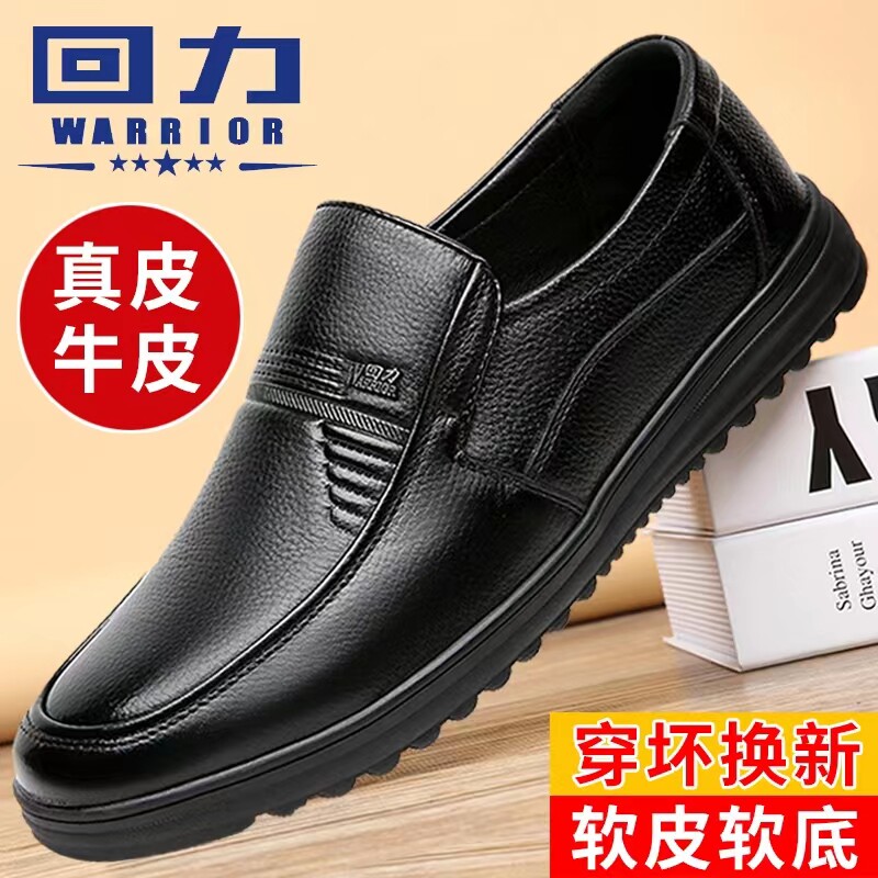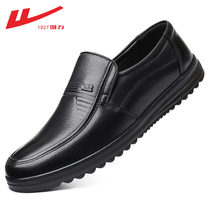 回力皮鞋男软底休闲男士一脚蹬真皮透气中老年爸爸鞋加绒舒适牛皮