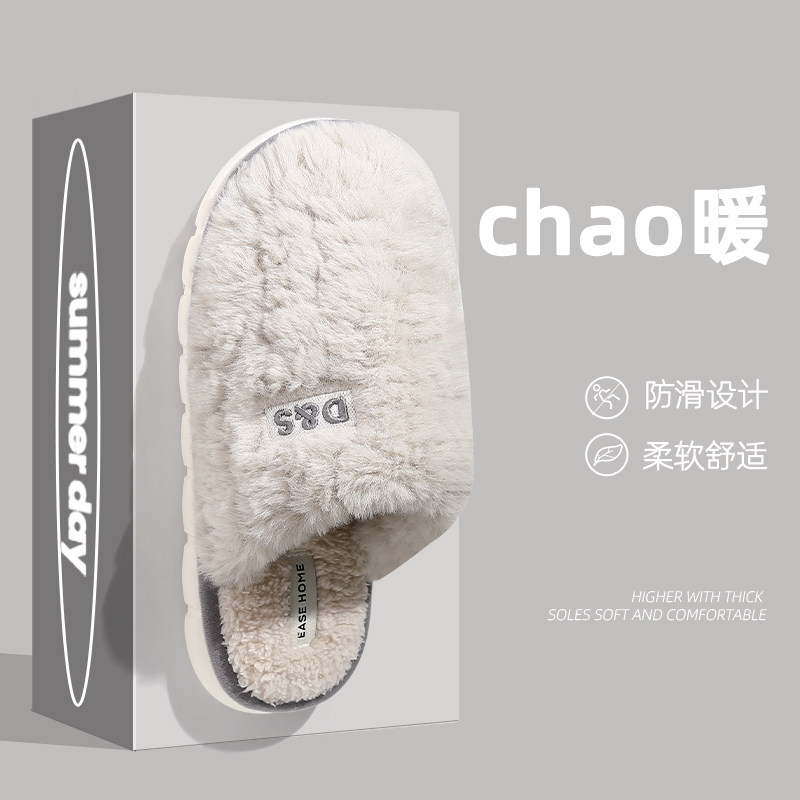 亚束棉拖鞋男士破茧外穿厚底增高情侣大码室内居家冬季保暖女新款