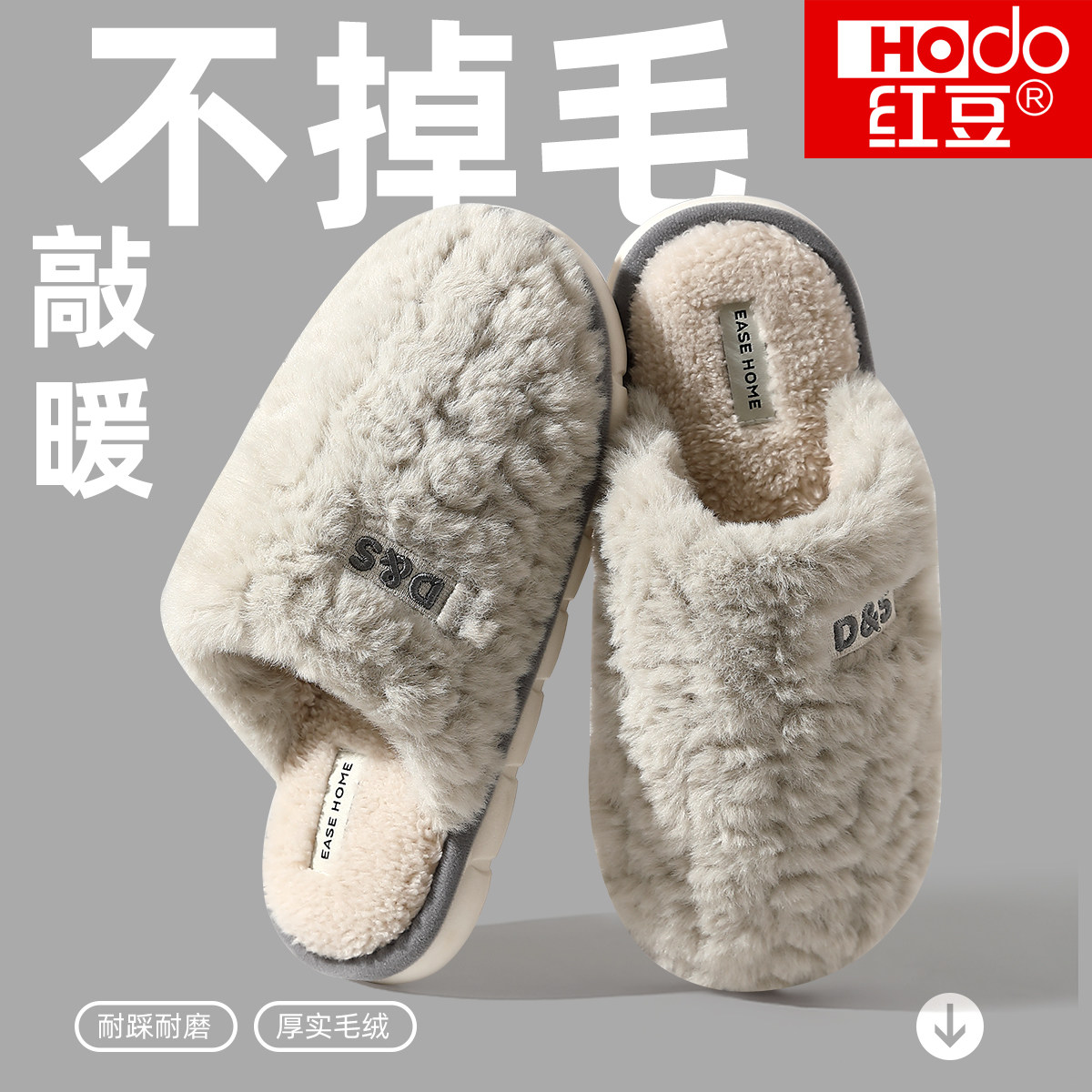 红豆棉拖鞋男士秋冬季2025新款室内家居软底防滑保暖毛绒情侣棉拖