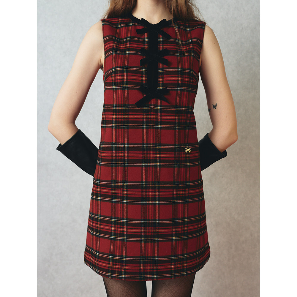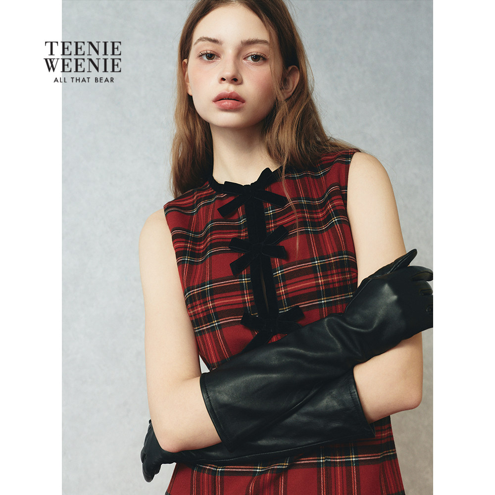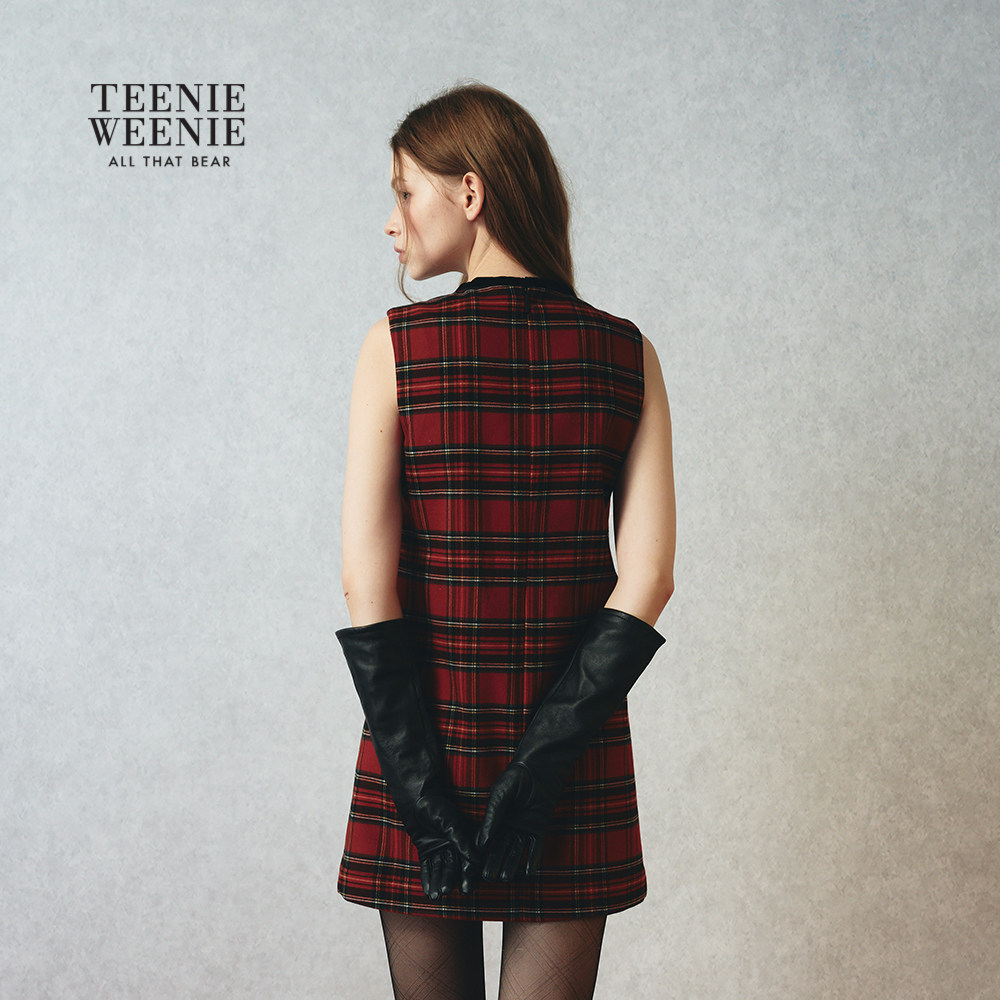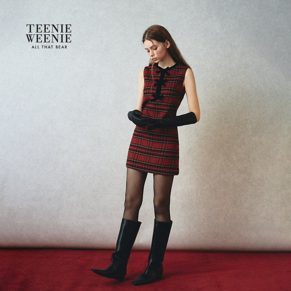 TEENIEWEENIE bearnova26春新款女装蝴蝶结装饰A字无袖格纹连衣裙