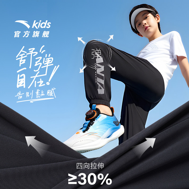 安踏儿童装男童裤子夏季薄款防蚊速干裤2025新款春夏装长裤运动裤