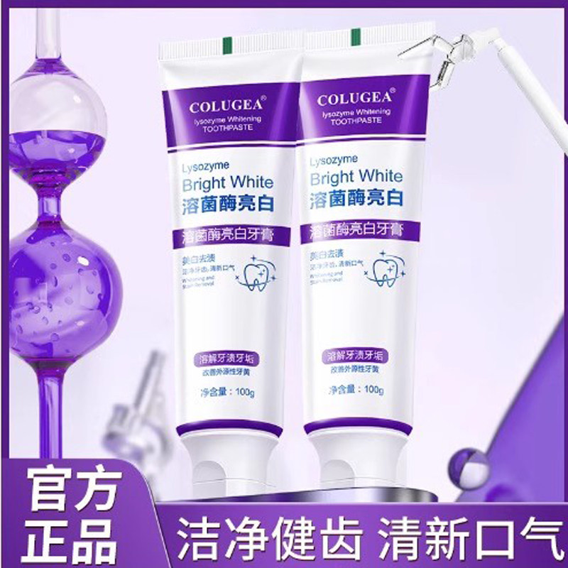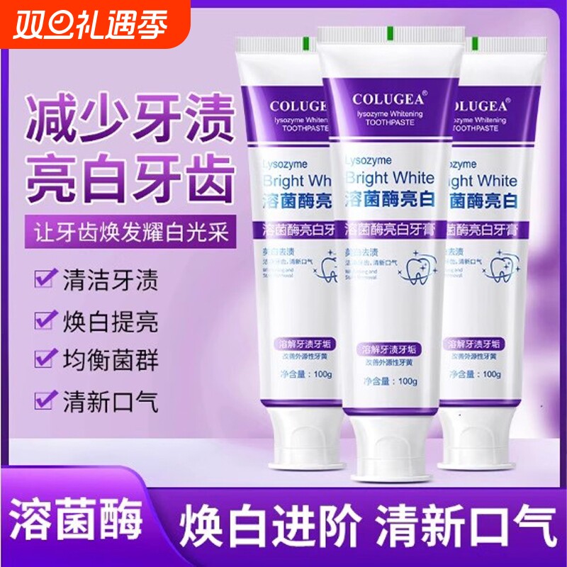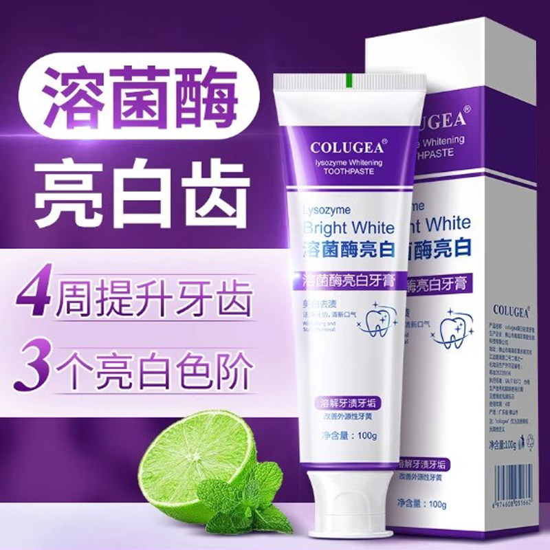 溶菌酶亮白牙膏去黄去口臭美白去渍紫光色修清新口气护龈防蛀牙齿