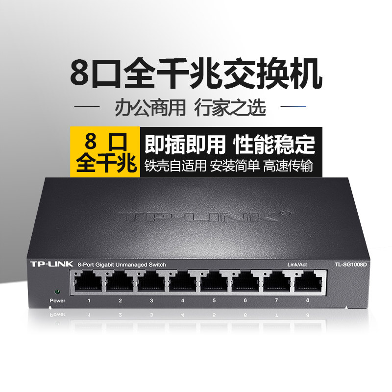 普联TP-LINK全千兆交换机8八口5五口钢壳办公家用网络监控稳定高速云管理tplink网络分线分流器TL-SG1008D