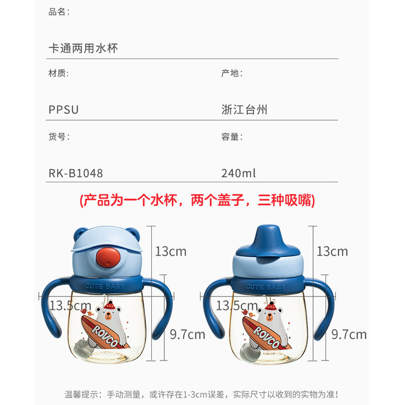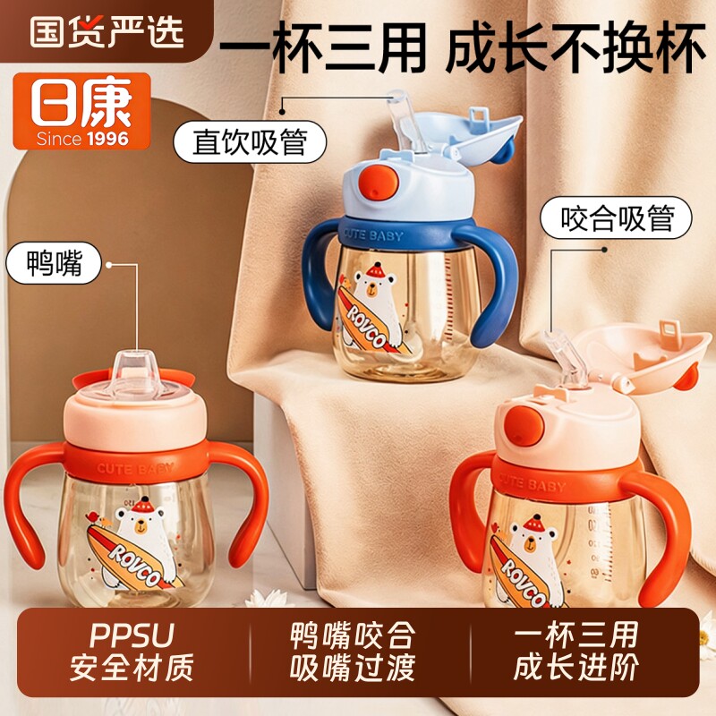 日康儿童直饮奶瓶牛奶杯1-2-3岁以上宝宝喝奶杯子PPSU水杯吸管杯