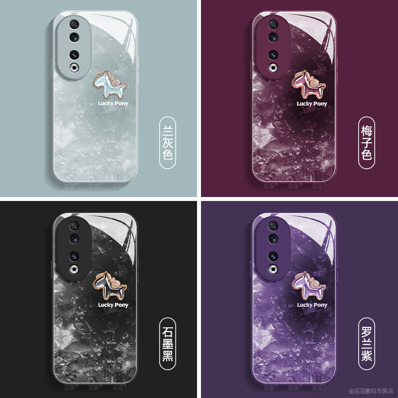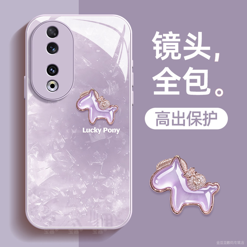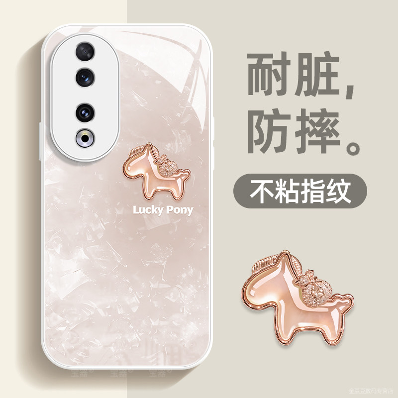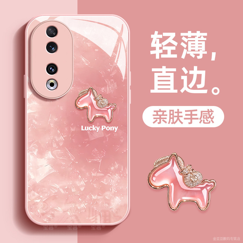 宝石小马适用荣耀90手机壳90pro保护套90gt液态钢化防爆玻璃硅胶超薄镜头全包防摔新年款女喜庆带挂绳honor