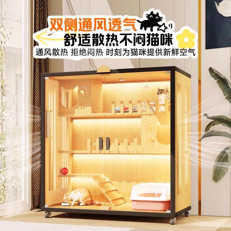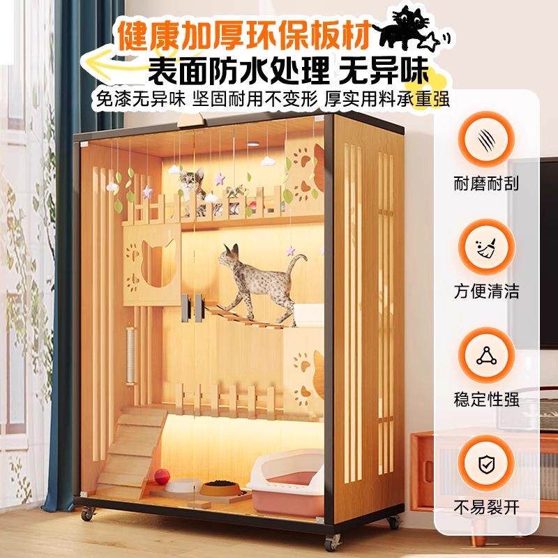 拉车套罩猫别墅实木猫窝家用室内猫笼子超大空间爬一体猫咪猫舍猫屋豪华