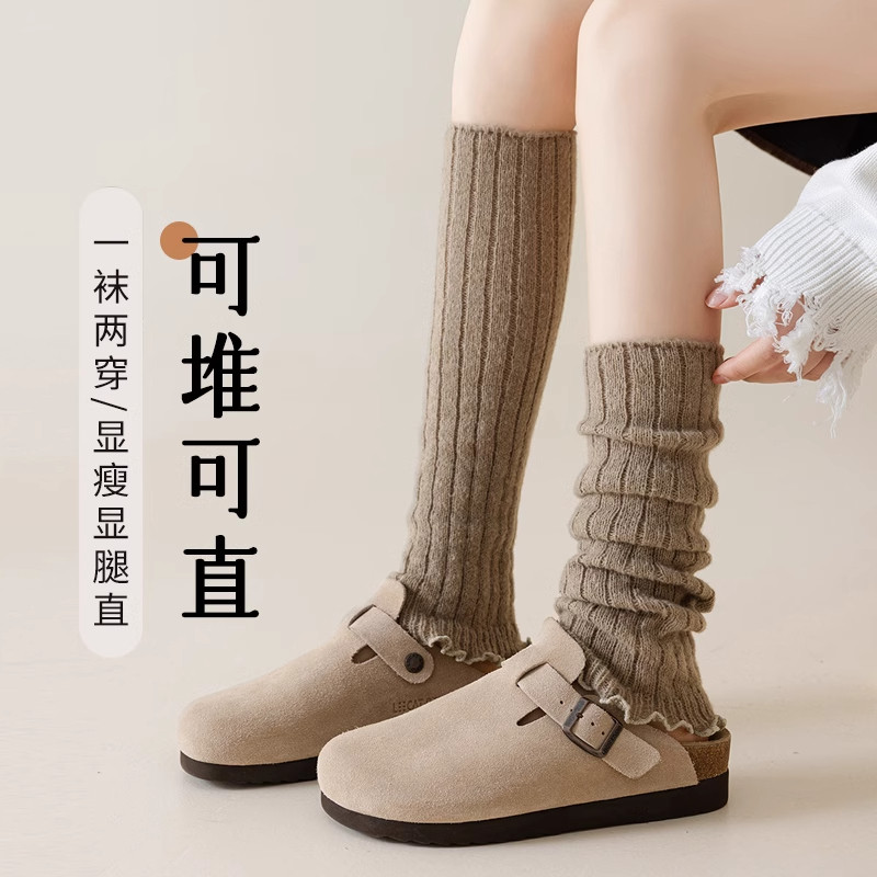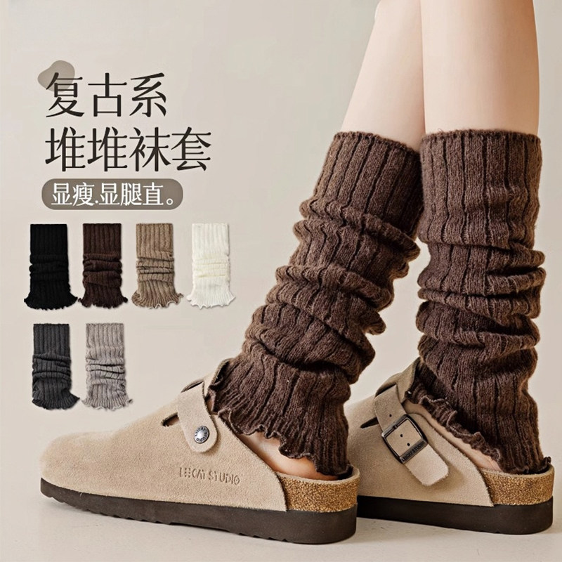 袜套女秋冬jk小腿袜修饰腿型棕色针织堆堆袜百搭腿套y2k冬季长袜