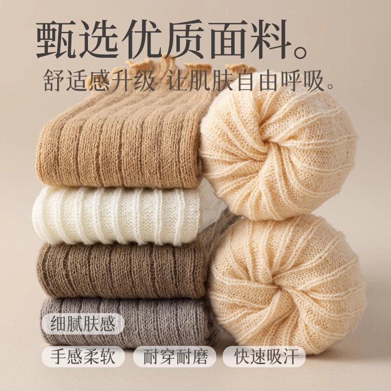 耐尔绵羊毛袜子女秋冬长袜加厚保暖复古百搭中筒袜ins潮堆堆袜