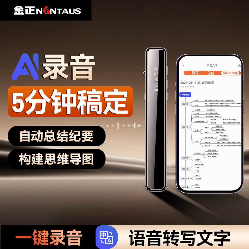 金正2025新款ai智能录音笔专业高清降噪随身上课用转文字神器设备