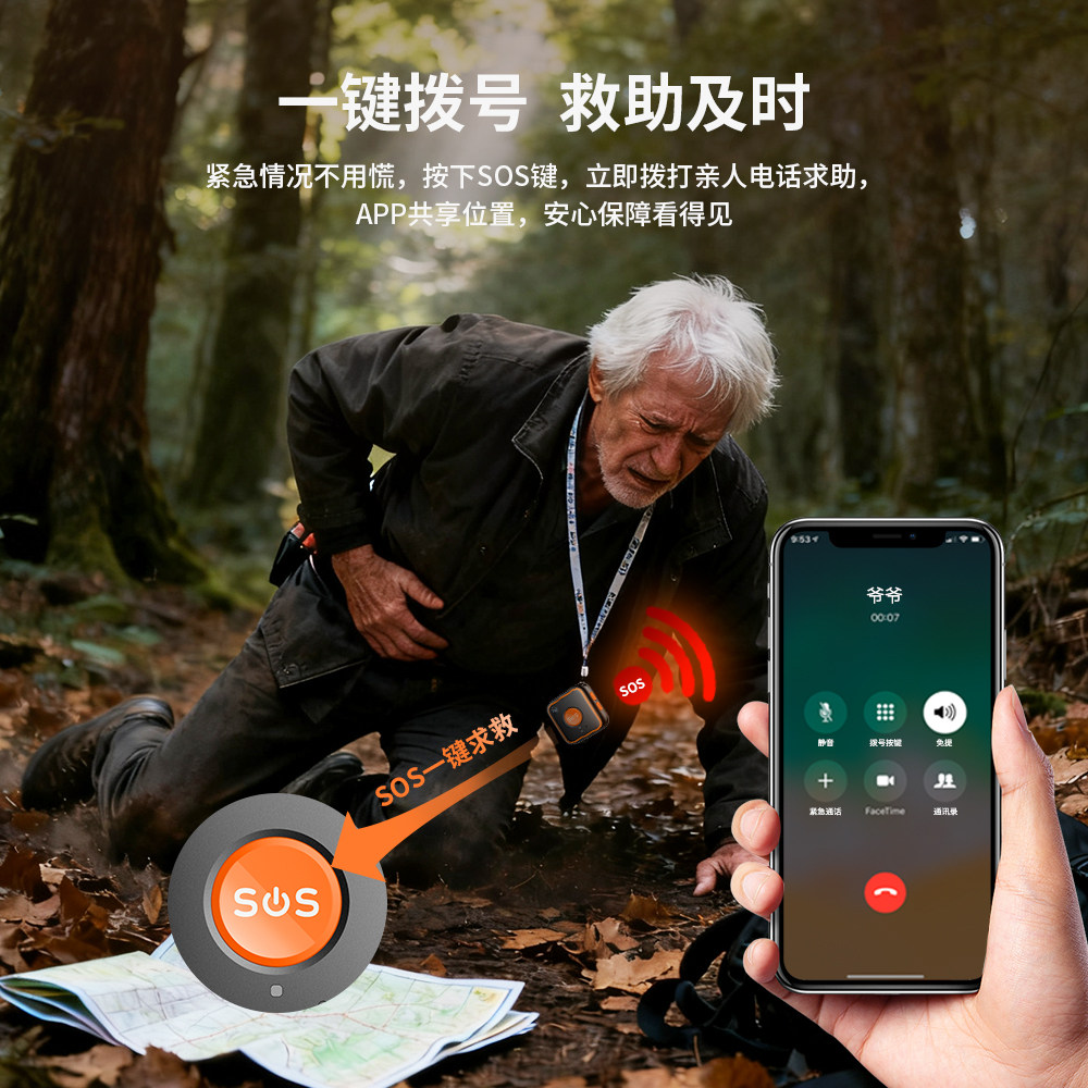 5G老人一键SOS呼叫电话报警定位器儿童跌倒gps防丢手环海外港澳台
