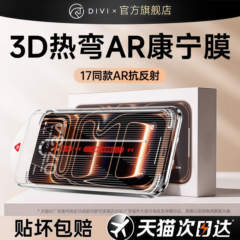 【17同款AR抗反射】哇牛3D热弯0.15mm裸感超薄钢化膜适用苹果iPhone17promax全屏覆盖包15保护16plus手机贴膜
