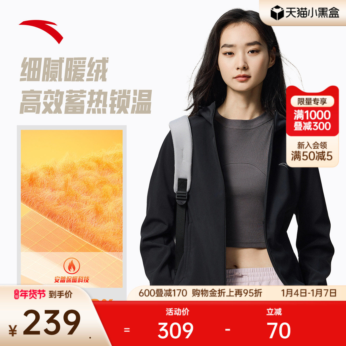安踏防泼水外套丨长袖夹克女冬季户外软壳衣加绒保暖运动风衣上衣