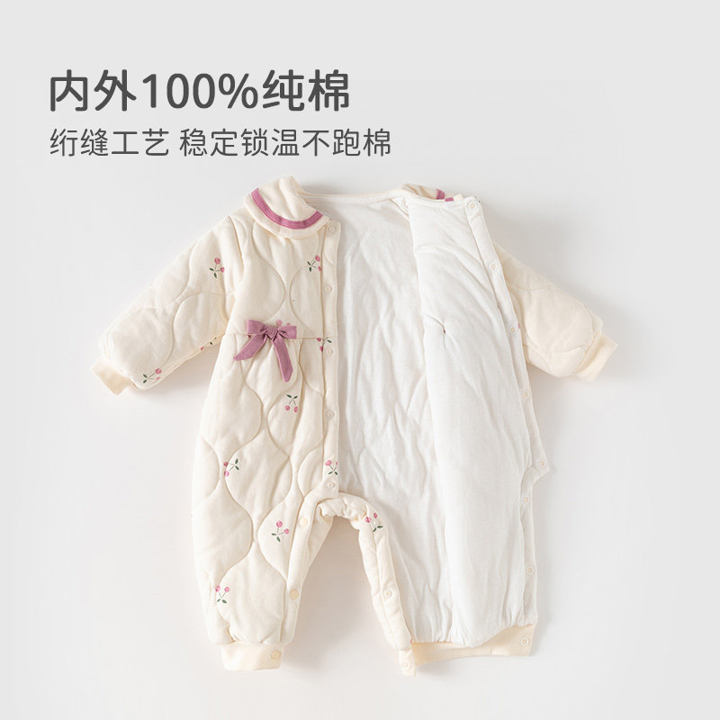 贝肽斯婴儿夹棉连体衣冬季加厚保暖新生儿衣服宝宝外出服冬装棉服