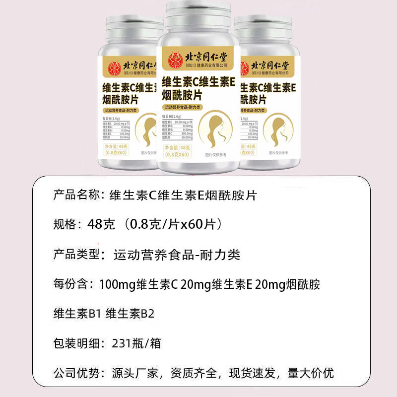 北京同仁堂朕皇维生素c维生素E烟酰胺咀嚼片60片非美白暗沉男女