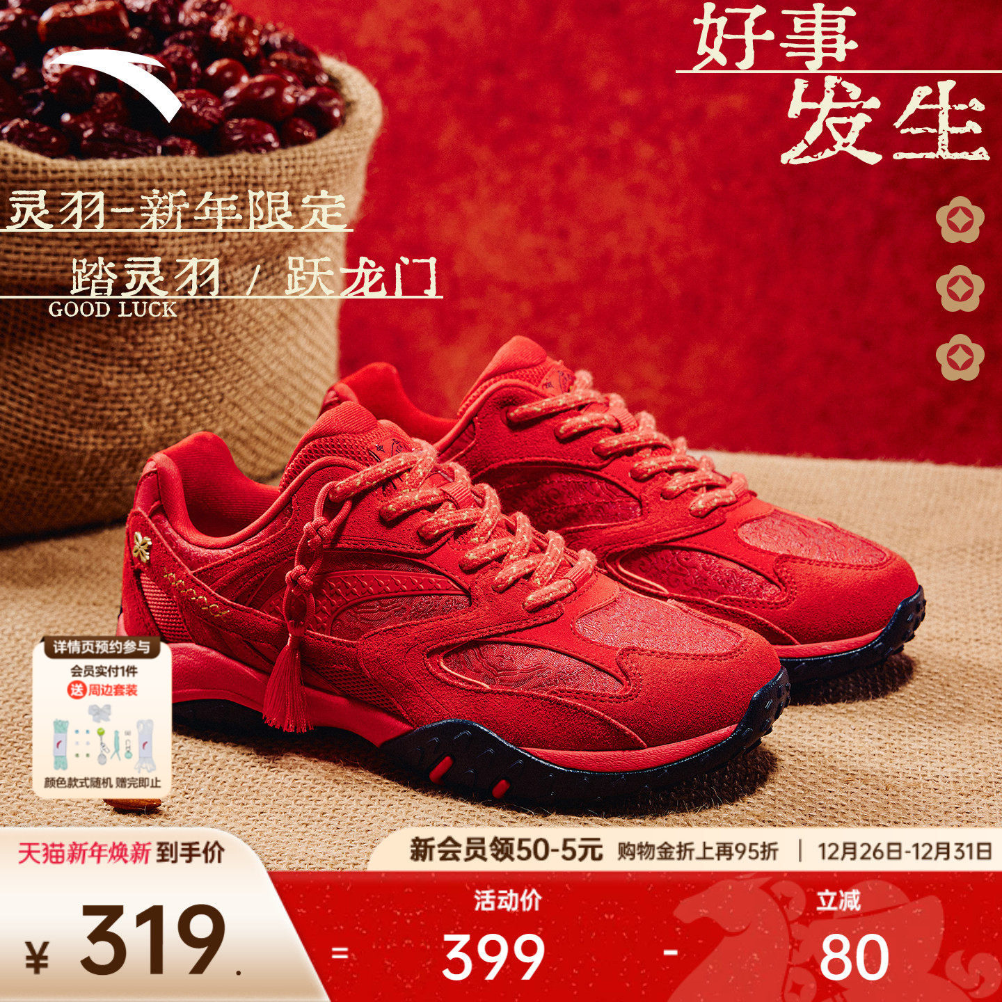安踏好事发生 灵羽丨新年款红色休闲鞋女鞋反绒皮潮流百搭运动鞋