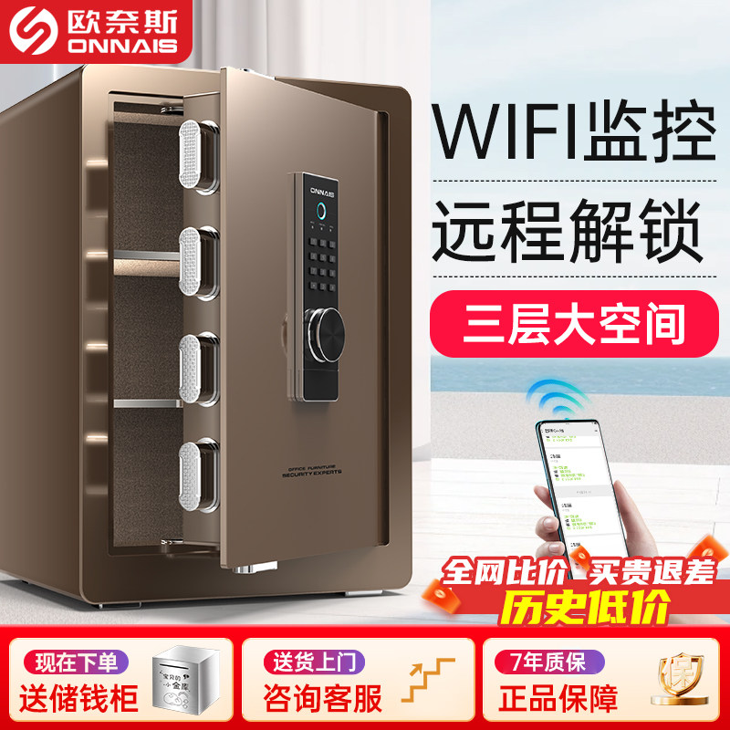 【三层大空间】欧奈斯家用保险柜防盗报警办公入墙指纹密码45/60/70/80/全钢保险箱小型床头柜2025年新款