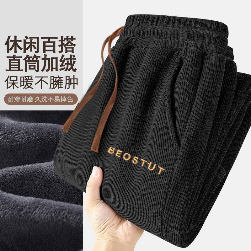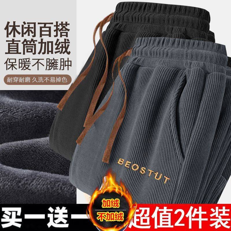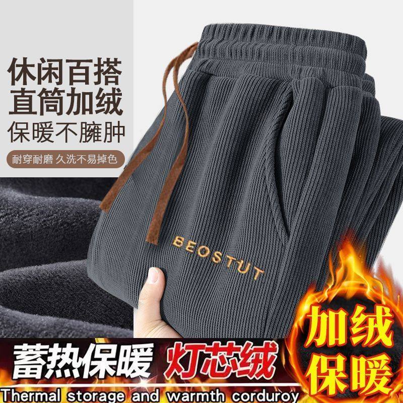 加绒加厚灯芯绒男裤子宽松大码中青年直筒休闲长裤耐穿耐磨弹力裤
